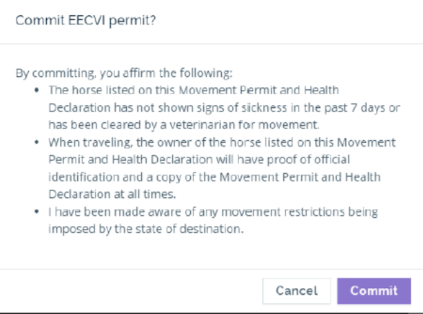 Once committed, print out the permit and carry a printed copy with you during travel. You will also need to carry a printed copy of your Coggins along with the permit.
